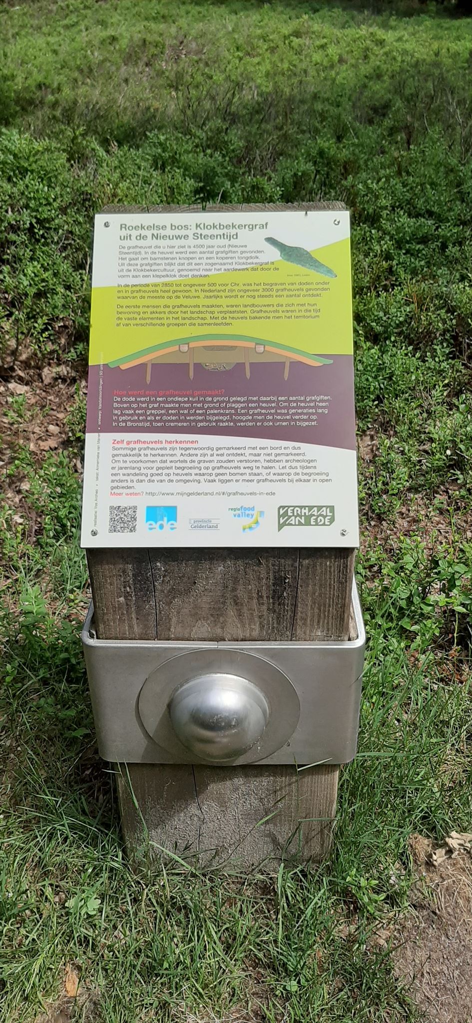 De grafheuvel die je hier ziet is 4500 jaar oud. In deze heuvel werden barnstenen knopen en een koperen tongdolk gevonden. Dit noemen ze grafgiften.