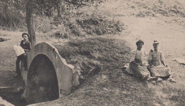 En contrebas, vous longez l'ancien parc de l'hôtel, qui jadis était ouvert au public. On aperçoit l'ancien étang qui devait être alimenté par la source.