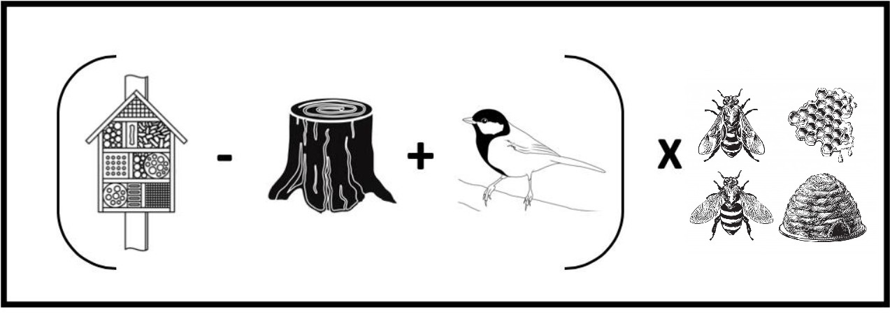 Bezoek eerst de drie duurzaamheidscaches. Zoek daarna hier de puzzelkaart voor de volgende vraag: "Welk insect hoort er achter het deurtje met de verticale gleuven? Noteer alle gevonden cijfers en bereken de volgende formule: