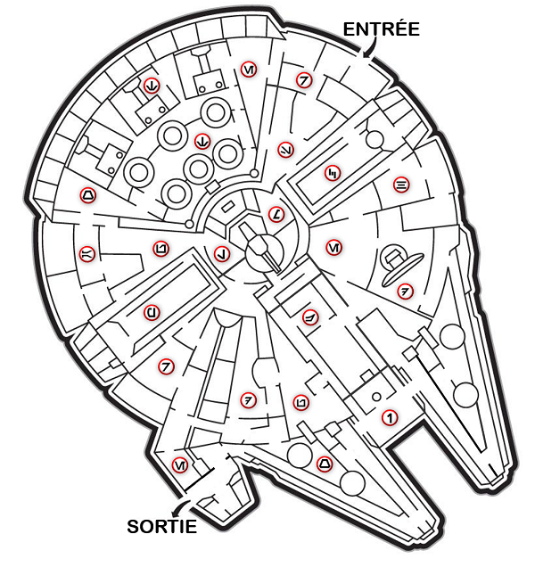 Inspecte les compartiments du Faucon Millénium avec Chewbaccache et Han Solog, et relève le code d’activation des vaisseaux rebelles : mot clé X.