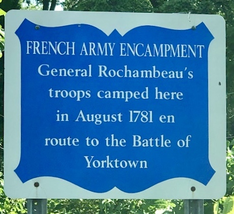 At Yorktown, Va the French troops joined General George Washington at troops to defeat the army of British General Lord Cornwallis, ending the Revolutionary war. The First Brigade of the French Army returned and encamped again at “Bullion’s Tavern,”on September 9/10, 1782, their thirty-second camp since departure from Williamsburg, Virginia, on July 1, 1782. The Second Brigade followed the next day.
