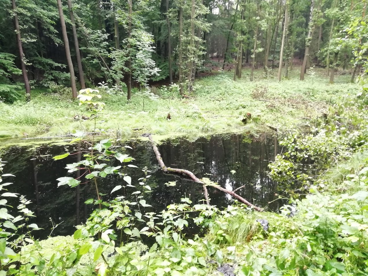 Zdá se, že jezírko není příliš hluboké, ale jeho voda je velmi tmavá, skoro jako v rašelinišťních jezírkách.