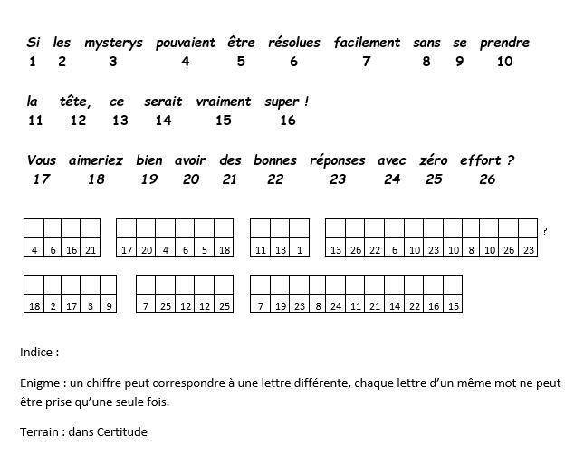 Vous pouvez valider votre solution d'énigme avec certitude.