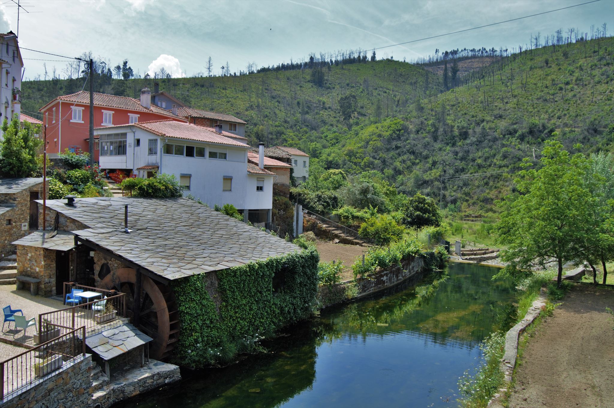 Depois de cruzar a mancha de pinheiro bravo, os derradeiros metros do percurso pedestre voltam ao contacto com a ribeira que alimenta a famosa praia fluvial de Pessegueiro.