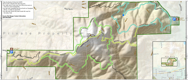 There is a large parking lot with a large ADA porta potty on the west side trailhead at 15501 E Brevier Road. It has 11 paved passenger vehicle parking stalls, and room for four trucks with trailers. It has more car parking on the gravel, also. There is NON-POTABLE water here. This parking lot has a security camera. I would still be careful about leaving valuables in your car.