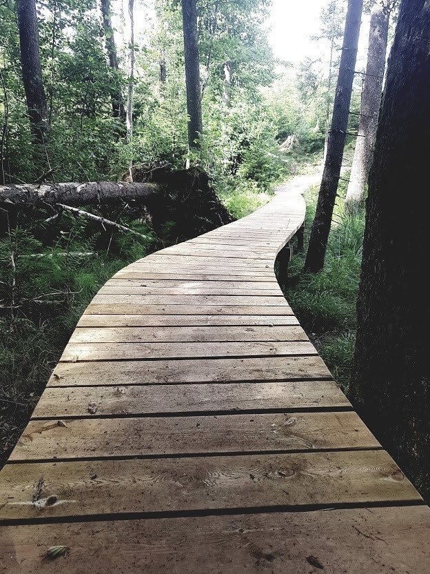 Här fortsätter slingan i skogen. Den är totalt 5,5 km om man går hela. Men den kan tas i etapper.
