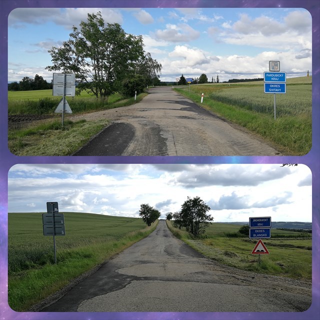 Samotnou hranici oproti jiným zde nepoznáte podle rozdílného povrchu vozovky, stojí za prd na obě strany, bohužel :)