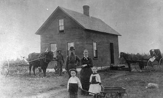 Look around you. What do you see? Trees, lots of lovely big trees. Who wouldn't want to build a home in the woods today! We take for granted all the lovely big trees we see around. But if you had arrived here, buying new farmland from Knapp, Stout and Company Co. you would have seen a totally different landscape. No trees, just stumps and brush as far as the eye could see. After the back breaking work of removing the stumps your farm house would have stood alone in a barren landscape. Trees around the buildings didn't come for many years.