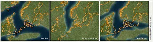 Havets udbredelse i henholdsvis Danien og Selandien (Tidligste Eocæn)