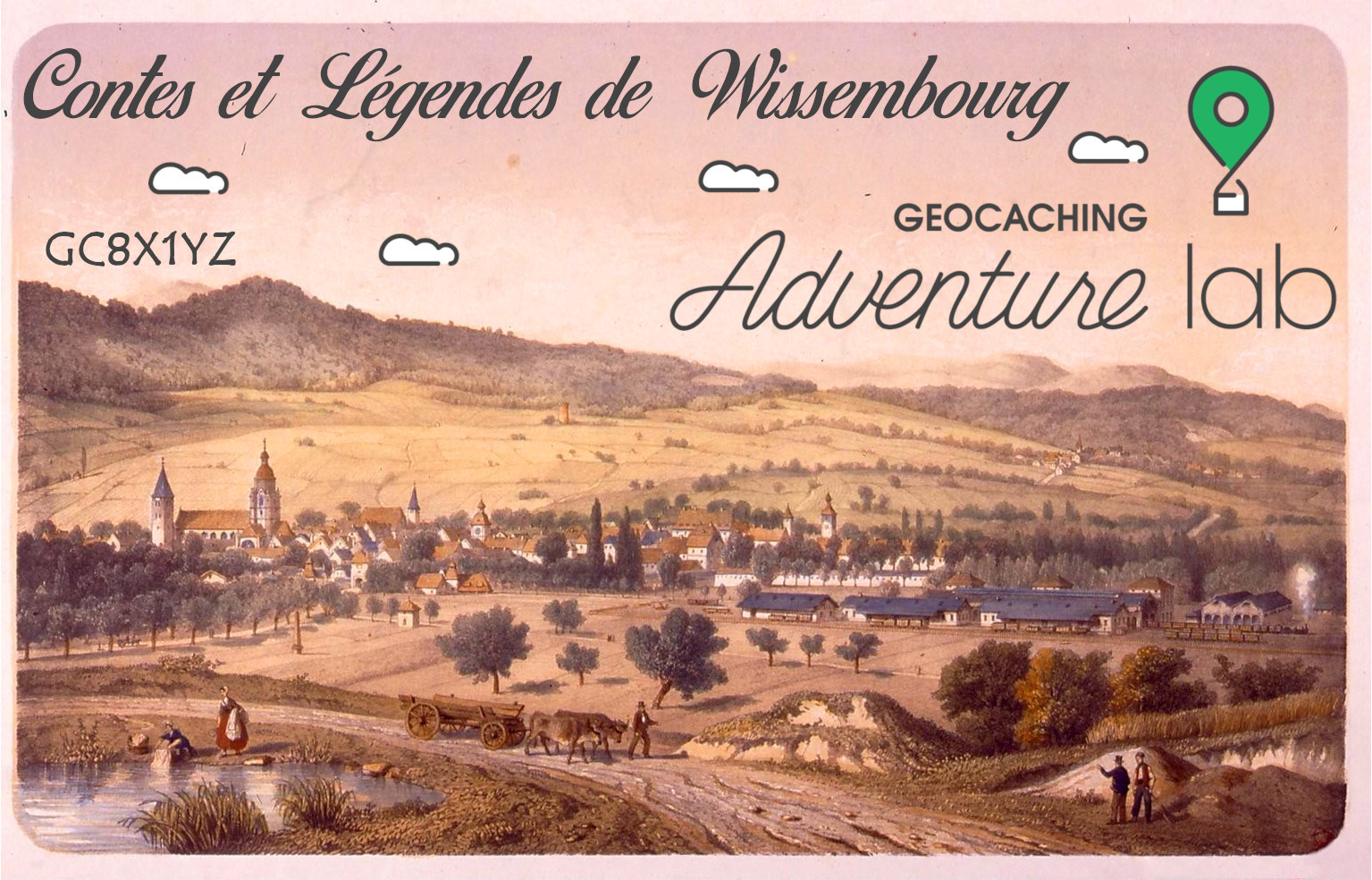 Pour découvrir les coordonnées de cette letterbox, vous devrez d'abord résoudre les 5 labcaches du Contes et légendes de Wissembourg que vous trouverez via l'application Géocaching AdventureLab.