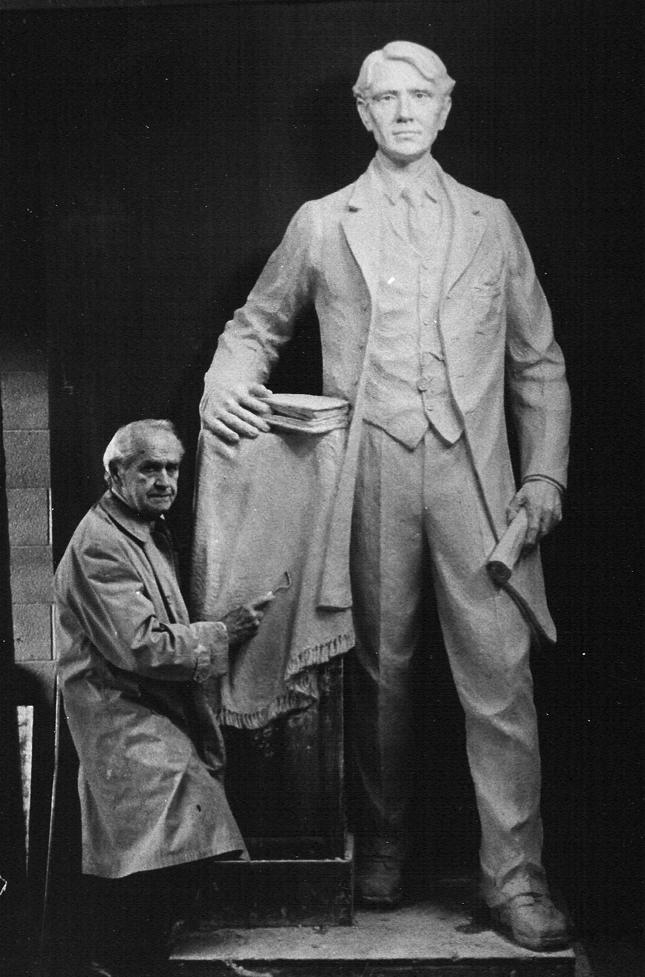 The project finally took off with a bound following the May '82 graduation ceremonies when Dacho Dachoff and Ed Maj were informally chatting with Board of Control Chair Earl Gabriel and Stanford Stoddard, president of the Michigan national Corporation, who had just received an honorary doctorate degree from Ferris. Dachoff explained the statue project to Stoddard. Stoddard, a patron of the arts, became excited about the idea of a Centennial sculpture and enthusiastically pledged his support. Soon thereafter, he and Robert Gerholz, long-time Board of Control member and alumnus, raised nearly $13,000 to kick-off the fundraising! In addition, Stoddard suggested that Avard Fairbanks, an internationally renowned sculptor from Salt Lake City, be contacted with the possibility of creating the sculpture.