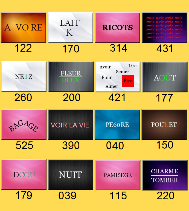 Note le nombre en dessous de ces 4 photos (et uniquement ceux-ci) pour obtenir la valeur de A, B, C, et D.