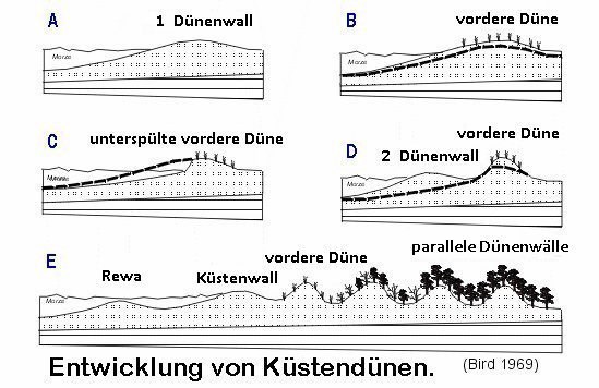 Die Dynamik der Bildung und Entwicklung von Dünen hängt hauptsächlich von der Erosionsgeschwindigkeit ab - je mehr Sandmaterial (mehr Sand vom Wind aufgetragen als von den Wellen weggenommen), desto schneller entwickeln sich die Dünen. Wichtig ist auch die Vegetation, die auf den Dünen wächst - sie stoppt den Sand, erleichtert so den Aufbau von Dünen, schüttet Sand über den Rücken bestehender Dünen in Richtung Land um und schafft einen neuen Dünenwall.