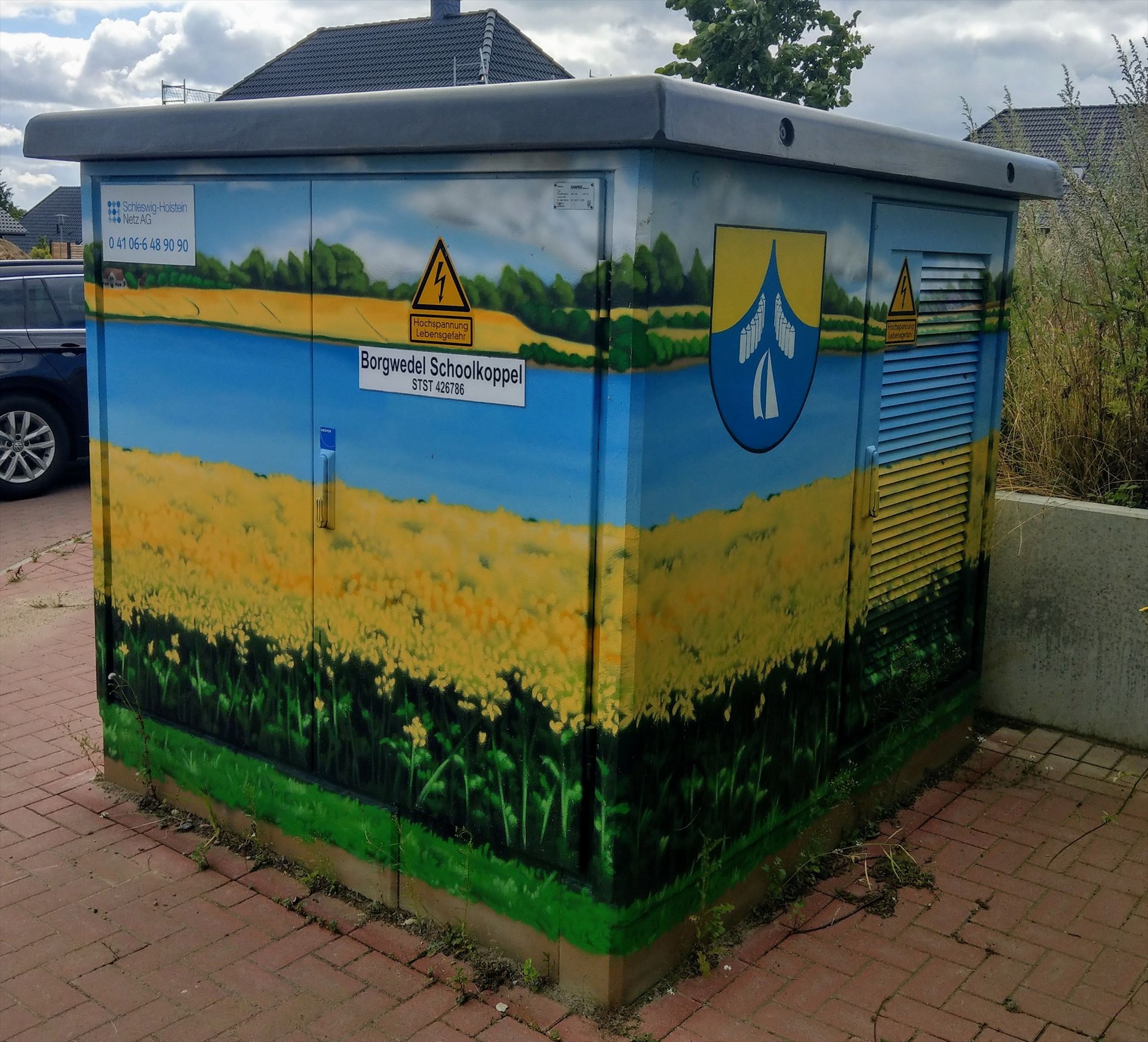 Hier in Borgwedel gibt's nun auch einen bemalten Stromkasten. Grund genug, hier einen Cache zu verstecken. Aufgrund von Abstandskonflikten diesmal ein Multi.