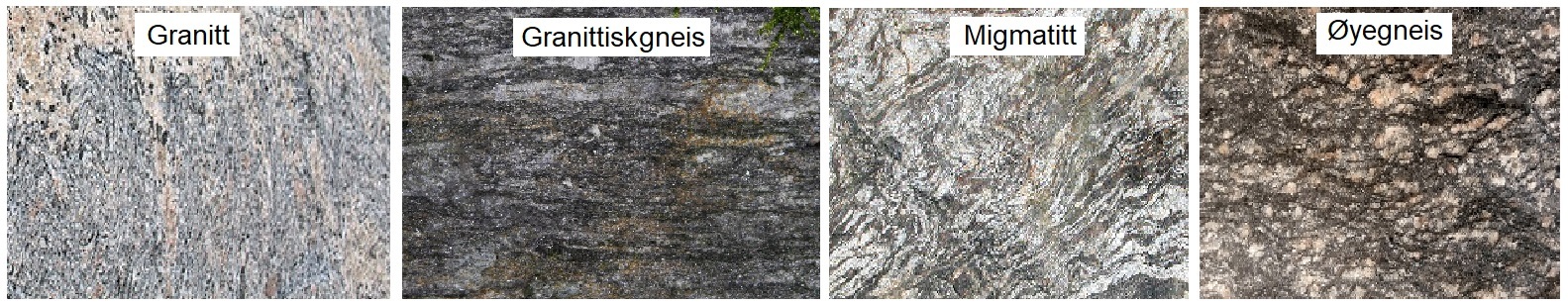 B. Du skal nå få studere bergarten som er på WP lokasjonen. Sammenlign dette punktet opp mot flyttblokksteinen, er bergartene like? Utdyp ditt svar med en beskrivelse av de to. Bruk bildene gitt over i 1.).