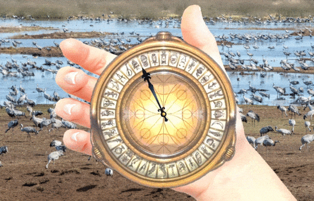 Am nächsten Morgen fuhren Lyra und Will zum See. Als sie ein Stück gegangen waren und eine gute Sicht auf den See und auf die Kraniche hatten, befragte Lyra wieder das Alethiometer nach einem sicheren Versteck. Es zeigte folgendes an: