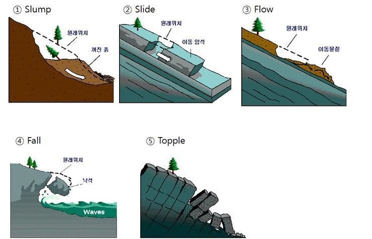 - 침식 또는 굴착에 의해 경사면이 가파르게 변화