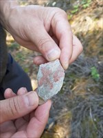 2) Allez au WP1, prenez 2 pierres de couleur brun et frottez-les ensemble. Décrivez-moi ce que vous voyez, si la couleur change, quelle structure (grossière - fine ou poudre), etc…. ??