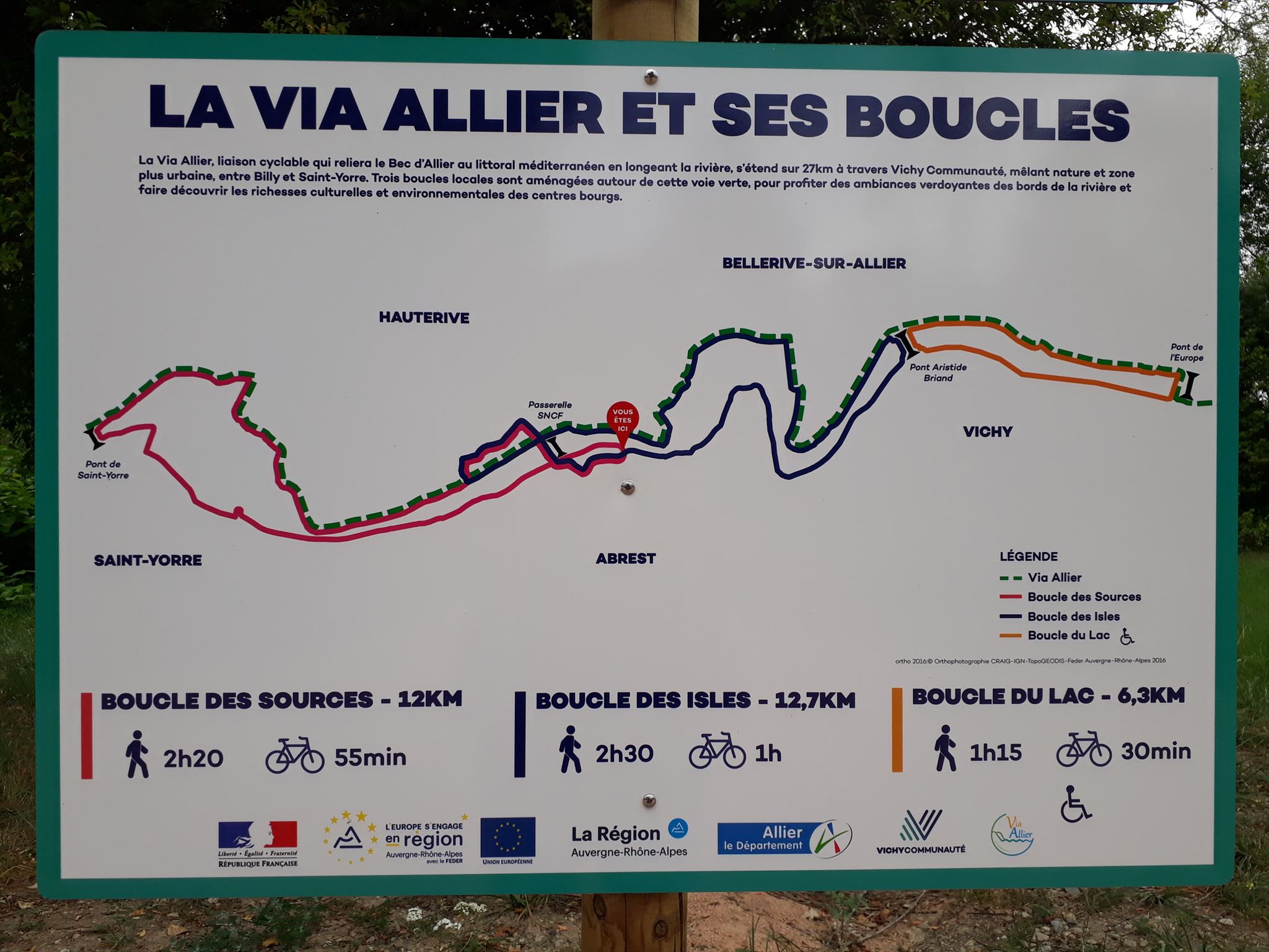 Cette boucle est naturelle et rafraîchissante! La descente vers le sud offre des paysages et des ambiances dont la variété et la richesse n'ont d'égal que l'authenticité ... L'eau et les sources de Saint-Yorre scintillent et accueillent le promeneur avec une vue inédite sur l'usine d'embouteillage de Vichy Saint-Yorre lors de la traversée du Parc Larbaud. La Boucle des Sources est un parcours pensé et adapté à tous dans un monde boisé où familles et sportifs plus aguerris prendront plaisir à traverser un paysage sans cesse renouvelé. De nombreuses aires de pique-nique et points d'information vous permettront de savourer ces spots à découvrir tout au long du circuit.