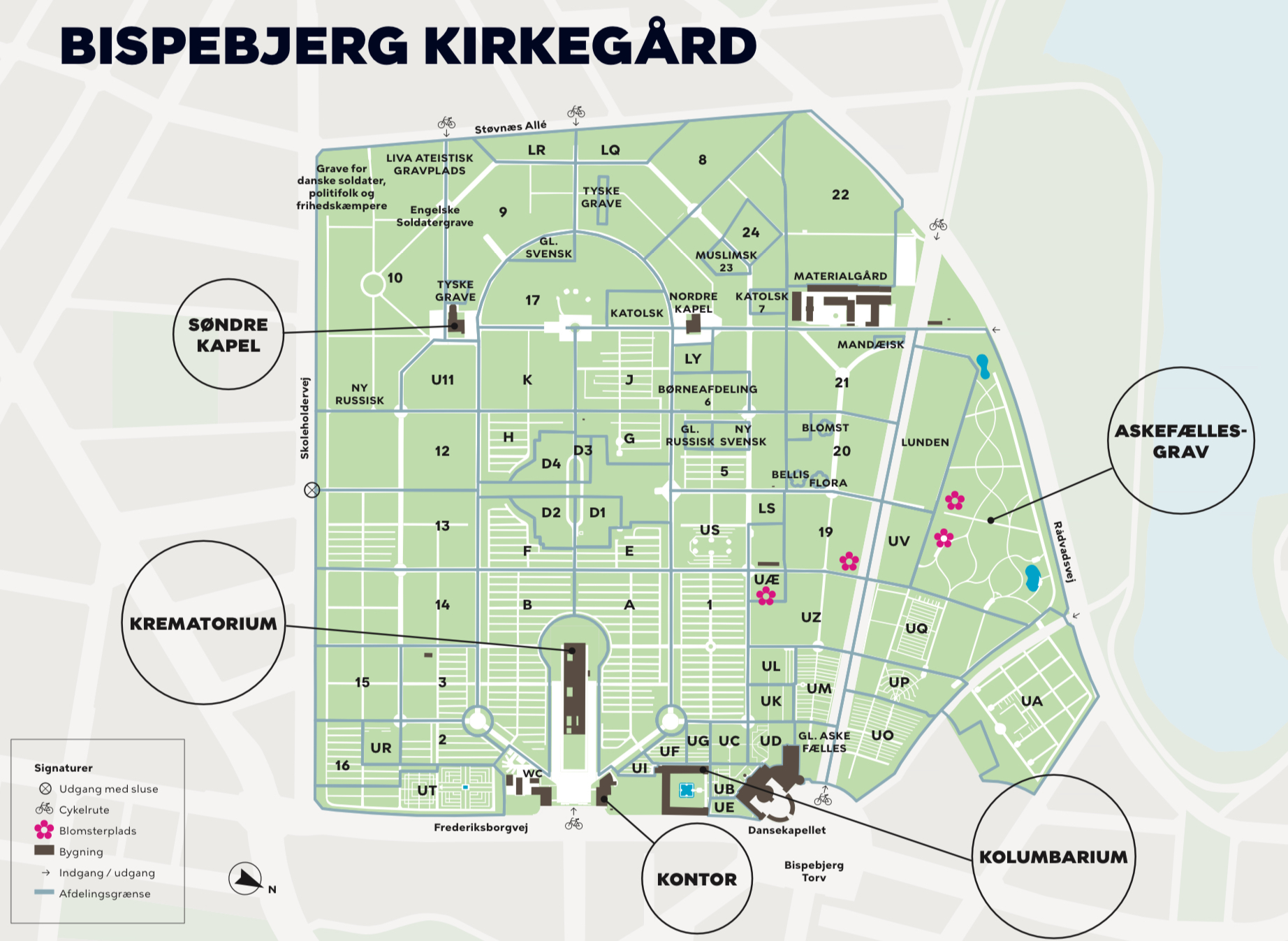- Det er en aktiv kirkegård, så udvis den påkrævede respekt.