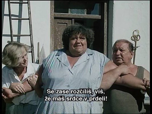 Anebo z téhož filmu: „Jestlipak si myslíte, soudruzi, že to přežil? No přežil, protože mu to politicky myslelo, vy šmejdi!“