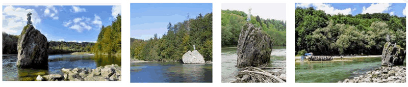 Je höher der Kalkgehalt des Bindemittels, umso fester ist das Gestein. Hinweisen möchten wir auch noch, dass die Komponenten im Gestein sehr unterschiedlich sind und aus dem Erosionsmaterial der Alpen stammen und wir aufgrund der Gesteinsart der Komponenten selbst – anhand ihres Gefüges und Mineralkornverteilung, etc., Rückschlüsse ihrer Herkunft (Hebung des einstiegen Liefergebietes und Abtragung) erhalten. Der Georgenstein besitzt dieselbe Zusammensetzung wie das umliegende (Konglomerat-)Gestein. Er ist, wie gesagt, durch Erosion abgerutscht und im Flussbett zum Liegen gekommen. Man kann an ihm aber die Schichtung wunderbar sehen, ohne einen frischen Hangrutsch suchen zu müssen.