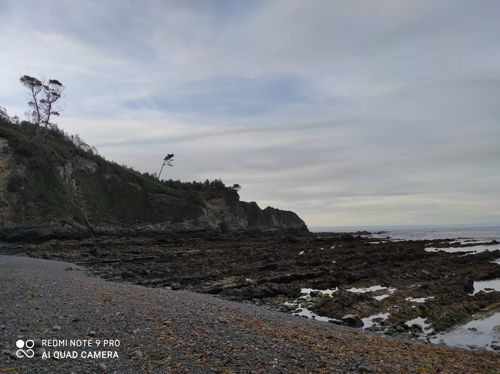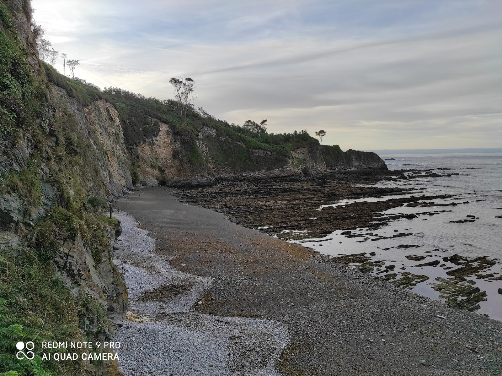Aislada sin paseo marítimo principalmente compuesta por grava. Se encuentra rodeada por elevados acantilados repoblados de pinos al igual que la gran mayoría de las playas occidentales.