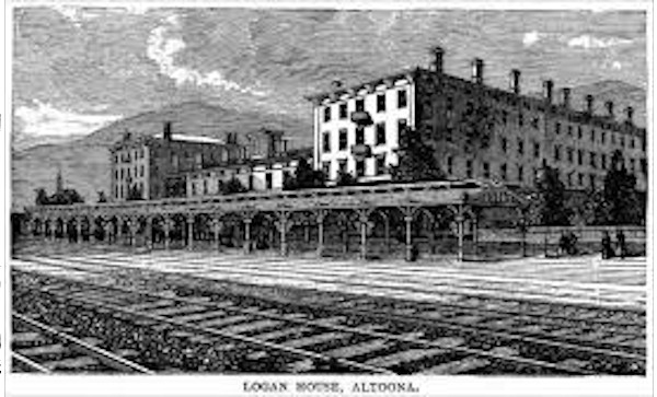 The Logan House Hotel was built between 1852-53 by Thomas Burchinell, a carpenter who worked for the Pennsylvania Railroad. The three-story, 106 room hotel was located close to Altoona's train station, which sat on an important rail line between Harrisburg and Pittsburgh.The hotel is recorded as having heated water and gas lighting. The hotel was named after Chief Logan, a local Native American chief whom had lived in the area in the 18th-century.