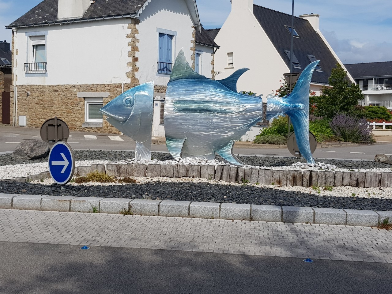 Symbole de ce qui a fait autrefois le développement et la prospérité d'Etel, par la pêche et les conserveries, un thon géant en aluminium est installlé sur ce rond-point.