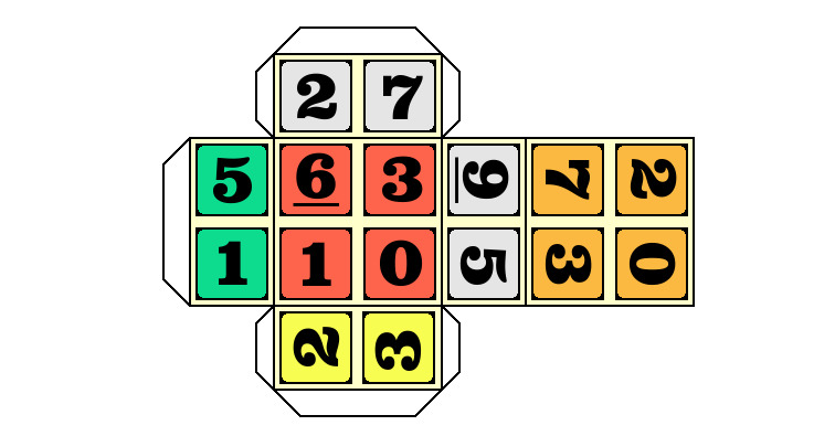 - Les 9 chiffres de chaque face du cube sont tous orientés de la même façon,