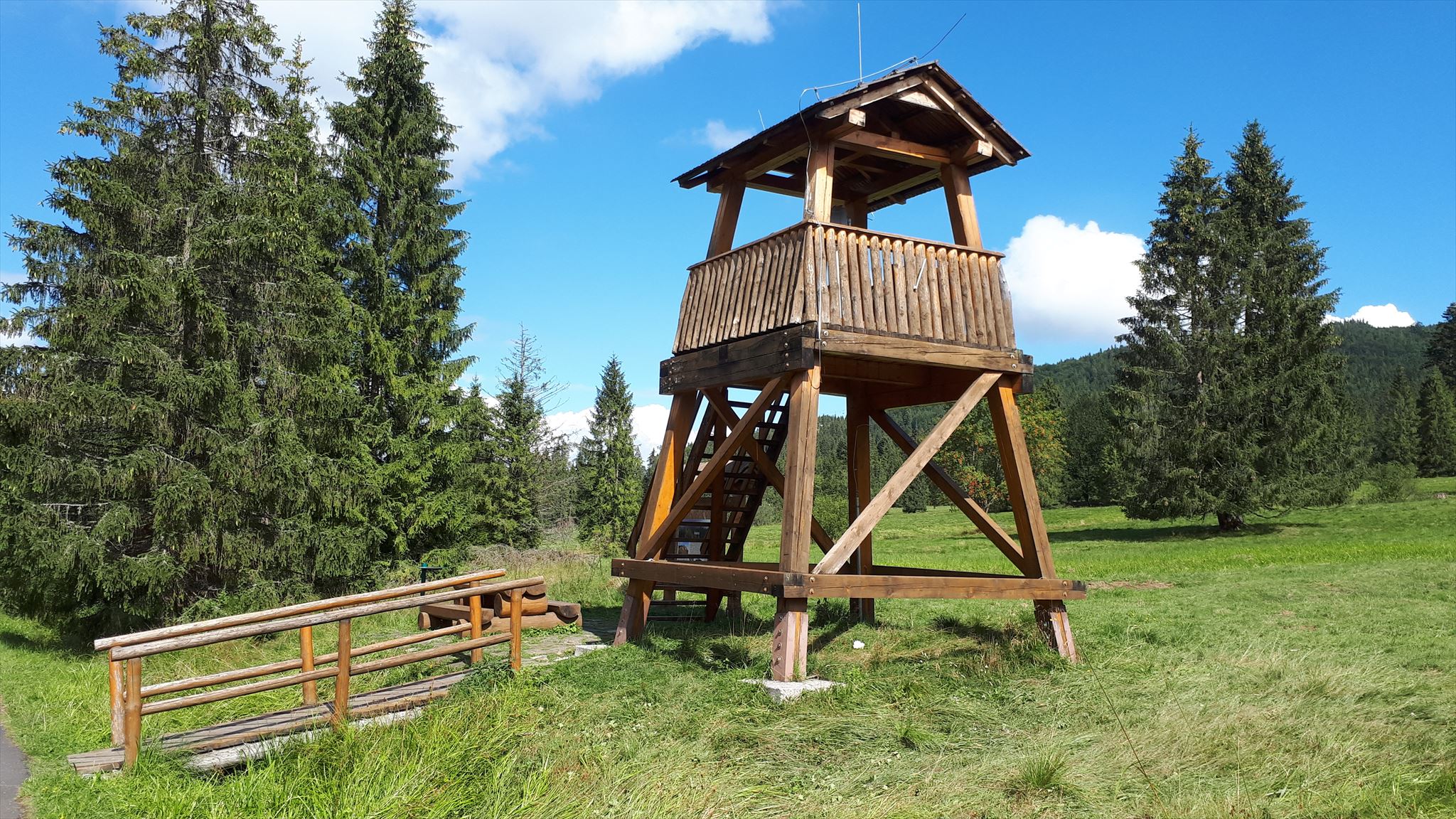 The cache is dedicated to the Anton Kocyan educational trail - its´ A part - which is 14,5 km long and suitable for hike or mountain bike. Cache is placed on the A3 stage, where a small wooden lookout tower is placed. You can have a beautiful view on Osobita - the mountain peak not accesible for hiking since 1987. Enjoy your imaginary hike..