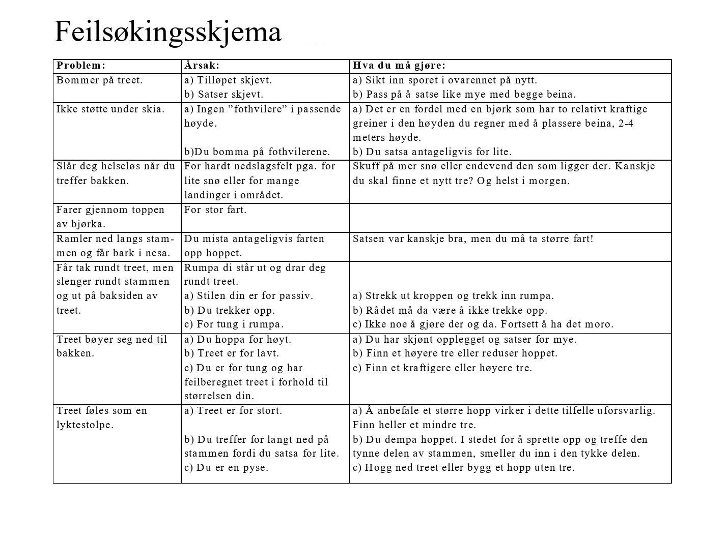 Nedan finns ett felsökningsschema till en sport som utövas i Norge.