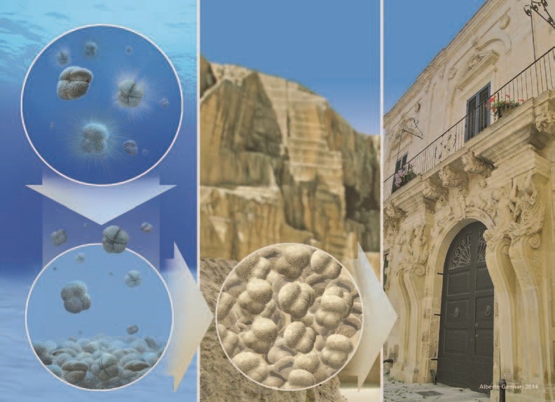 The rock of which the Salento peninsula is composed, and in particular the Lecce stone, is a set of millions of years old sediments deposited on a seabed. With tectonic movements still in progress, the rock has re-emerged from the sea. Over time and with the weight that has gradually accumulated, the seabed has compacted, cemented and diagenized (that is, it has undergone a diagenesis, a chemical-physical process that allows the passage of a sediment in a so-called rock "coherent"). At the end of this long process a rock was formed characterized by compactness, purity and malleability (thanks to the presence of clay). This rock is made up of detrital limestone, sometimes relatively friable. The grain is uniform and medium-fine, with a variable color from the classic yellow to various shades of green (due to the presence of glauconite, very present in a particular type of rock, the pyromaph). It is common to find some macrofossils inside the rocks, such as lamellibranch molluscs (especially pectinids), echinoderms such as stars and above all sea urchins (spatangids), sometimes even shark teeth.