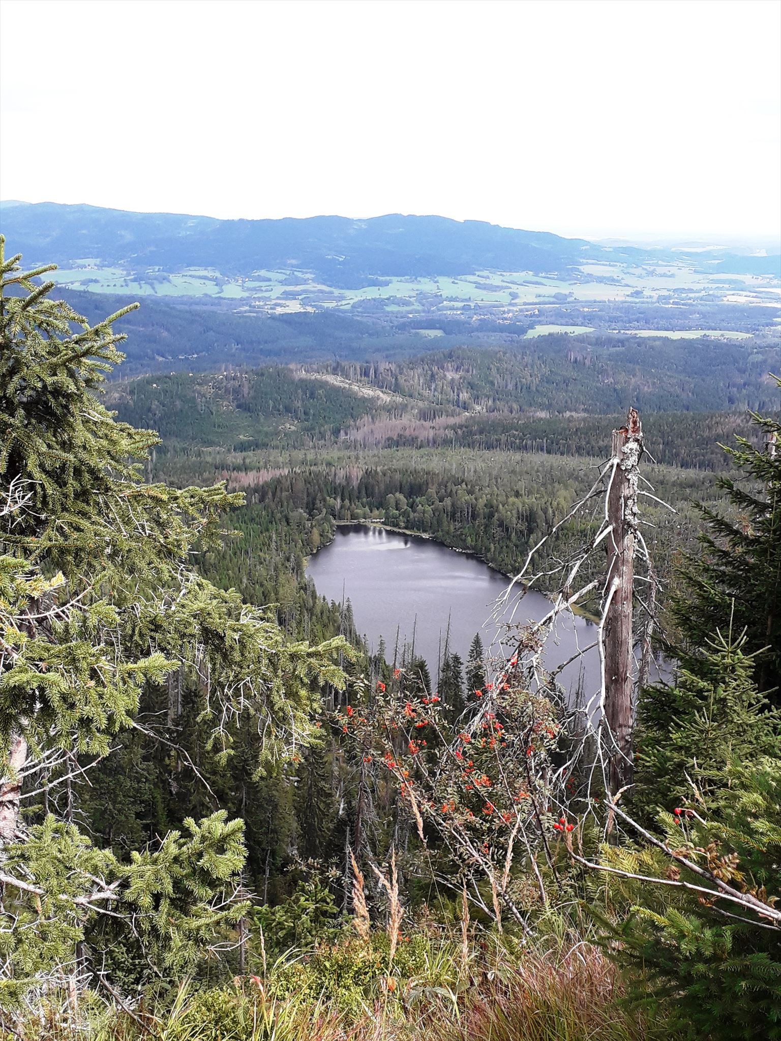 Lake Plešné jezero (formerly Lake Plekenštejnské jezero, German Plöckensteinsee or Plöckensteiner See) is a glacial lake in Šumava in the South Bohemian Region in the Czech Republic. It lies at an altitude of 1090 m, has an area of 7.48 ha, a circumference of 1242 m and a maximum depth of 18.30 m. The volume of retained water is 617 000 m⊃3;.