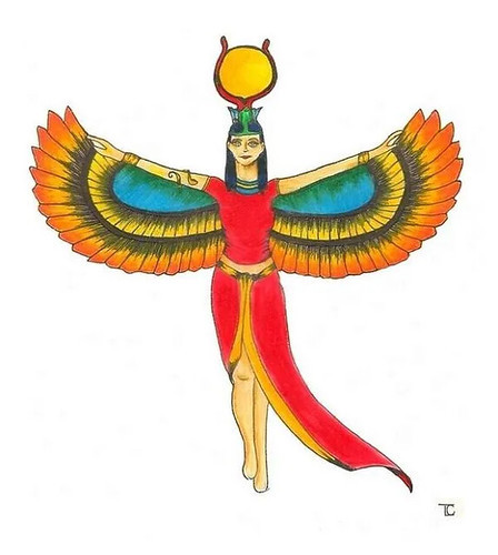 Provavelmente a mais famosa de todas as deusas egípcias, Ísis foi inicialmente associada a Hathor , sendo assim proclamada como a personificação de muitas das qualidades "maternais". No entanto, ela ganhou ainda mais importância durante o período do Império Antigo, como um dos personagens proeminentes do mito de Osíris, no qual ela não apenas ressuscita seu marido assassinado, o divino rei Osíris, mas também dá à luz e protege seu herdeiro, Hórus .