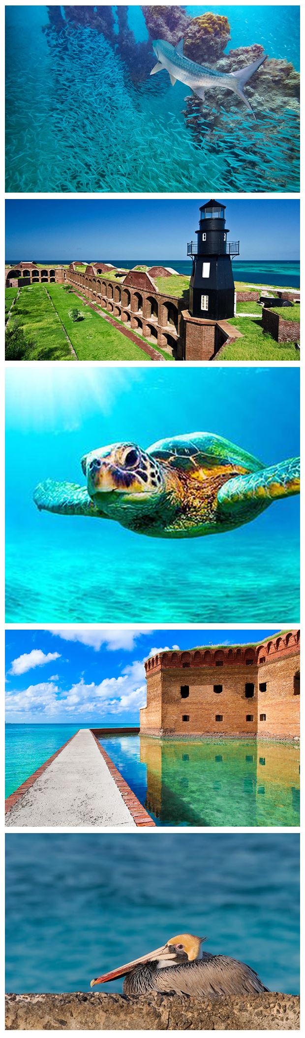 The rich cultural heritage of the Dry Tortugas all begins with its location 70 miles west of Key West, Florida. The seven keys (Garden, Loggerhead, Bush, Long, East, Hospital, and Middle) collectively known as the Dry Tortugas, are situated on the edge of the main shipping channel between the Gulf of Mexico, the western Caribbean, and the Atlantic Ocean. Early on, the shipping channel was used among Spanish explorers and merchants traveling along the Gulf Coast. Its crown jewel, the historic Fort Jefferson, was once used as a prison during the Civil War.