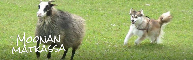 Lampaita on käyty paimentamassa pariin otteeseen. Koiruus oli alussa sitä mieltä, että ootko tosissas, noiden tuijottavien ja kylkeen tuppaavien otusten kanssako pitäisi tulla toimeen? Emäntää on paljon mukavampi paimentaa kuin noita aidassa liikkuvia tolliskoja. Kun Moona sai koirakaverin näyttämään mallia, sitten mentiin hurjalla haukulla.