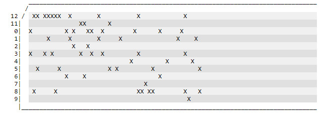 He mumbled something about it using the IBM 029 Code Hollerith system... I guess that'll make sense to some.