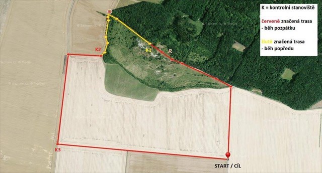 Trasa čtyř ročníků vedla vždy přes kopec Oškobrh. Nahoru a do cíle se běželo pozpátku a cestou dolu se mohlo popředu. Pátý ročník se koná 19.9. 2020 odpoledne, ale kvůli oplocení dříve přístupné strany kopce už musí vést jinudy. Start a cíl zůstává pod kopcem, ale trasa povede přes obec Oškobrh.