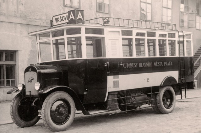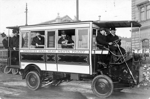 Kolejová doprava byla vždy základem městské hromadné dopravy v Praze. Na počátku 20. století. se začaly objevovat první zkoušky s hromadnou dopravou silniční. Jednalo se spíše o dočasné řešení v místech, kde nebyla jistota o rentabilnosti výstavby elektrické dráhy. Elektrické podniky vypravily dne 7. března 1908 první spoj. Na vozech byl uveden název Omnibusy král. hlav. města Prahy, což odpovídalo dobovému označení dopravního prostředku. Trasa vedla z Malostranského náměstí vzhůru Nerudovou ulicí kolem Pražského hradu na Pohořelec. Vozy ještě neměli ani klasické pneumatiky, ale jen plné pryžové obruče.