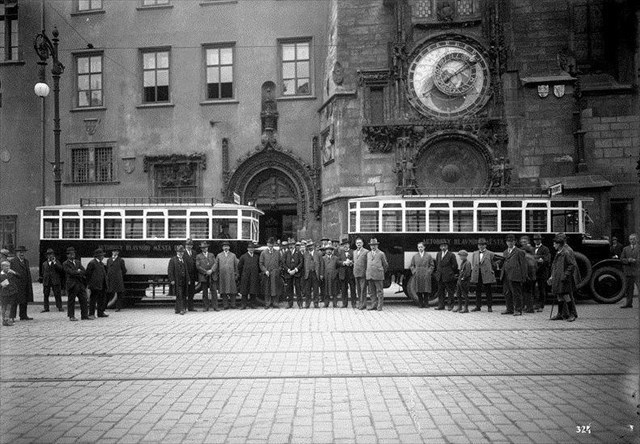 slavnostní zahájení provozu první autobusové linky v Praze v červnu 1925