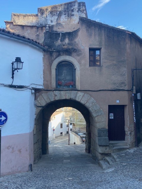 On the outside, the arch is crowned by the Cáceres shield, while on the inside there is a temple with an image of Our Lady of the Star, which gives the arch its name. The image is illuminated by a small star-shaped lantern and, below it, there is a stone shield of the Carvajal family.