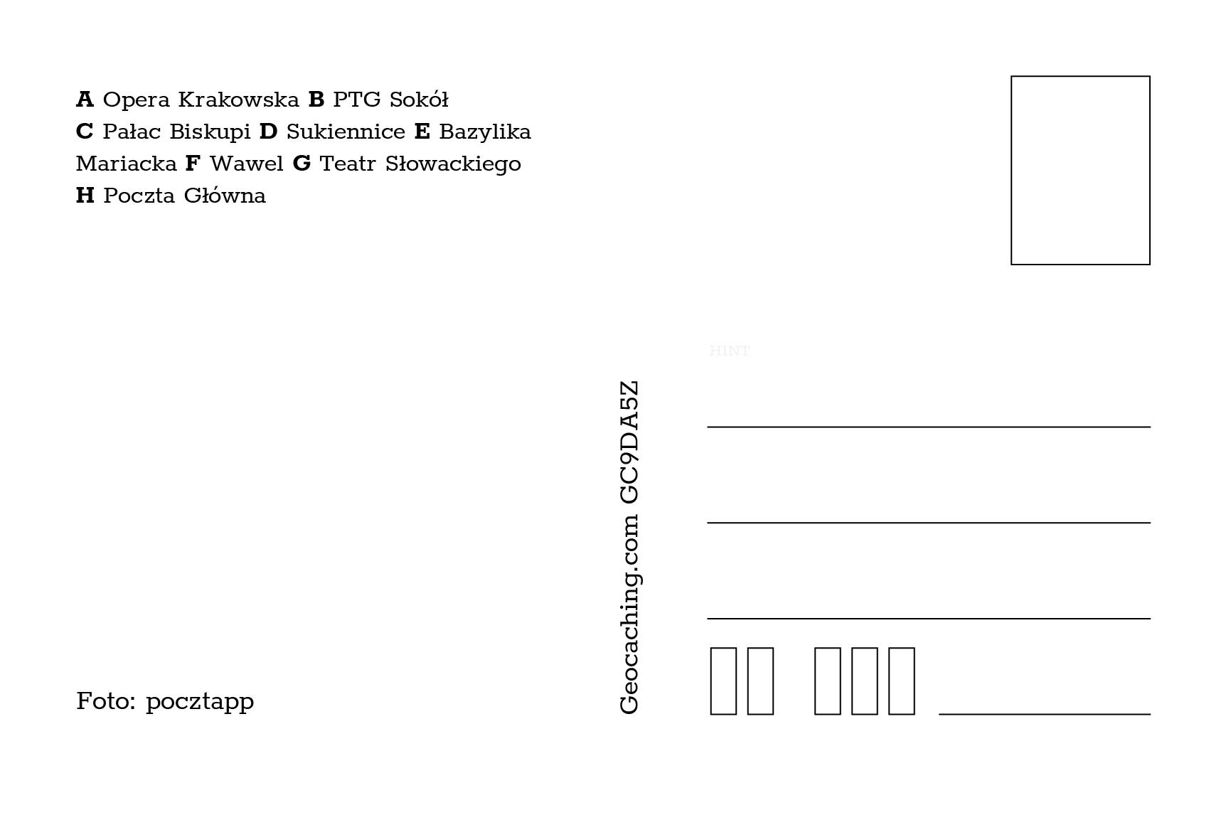Po odnalezieniu kesza możesz dostać certyfikat w postaci ... tejże kartki pocztowej. Warunkiem jest przesłanie mi danych adresowych pod które wyślę do Ciebie kartkę oraz podanie hasła zapisanego w logbooku.