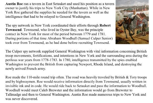 Tallmadge then set up a spy network in New York with Woodhull as the lead agent.