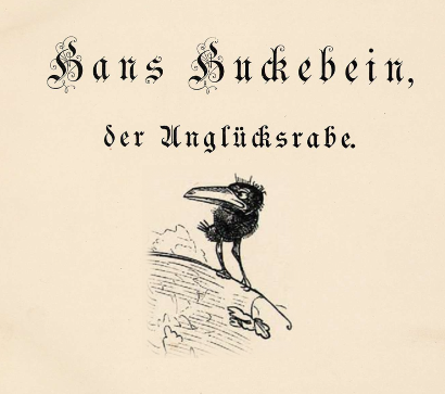 Finde Hans Huckebein - den Unglücksraben aus der Bildergeschichte von Wilhelm Busch.