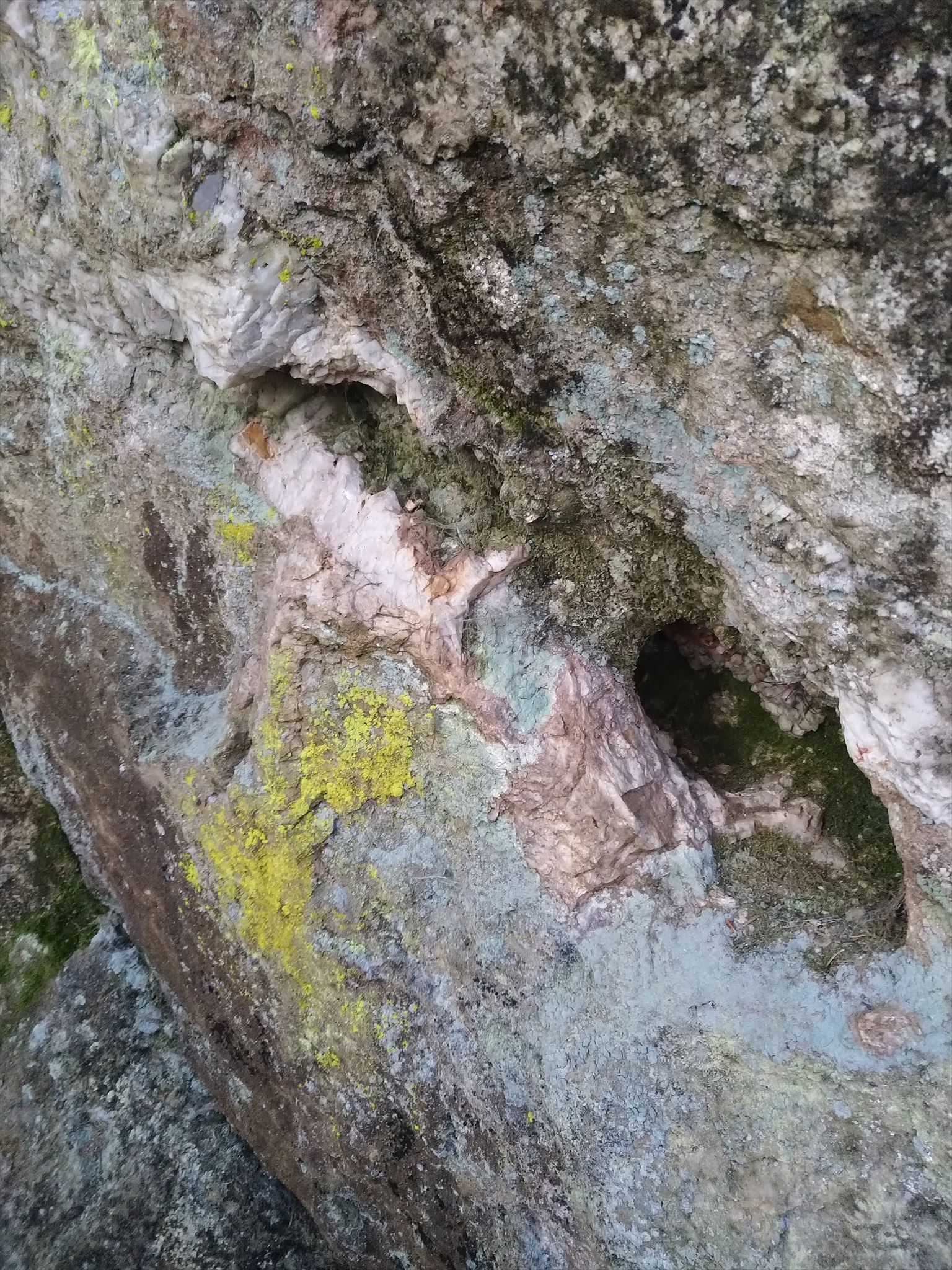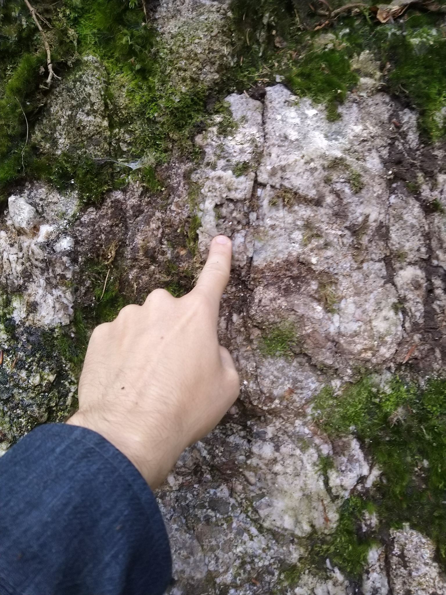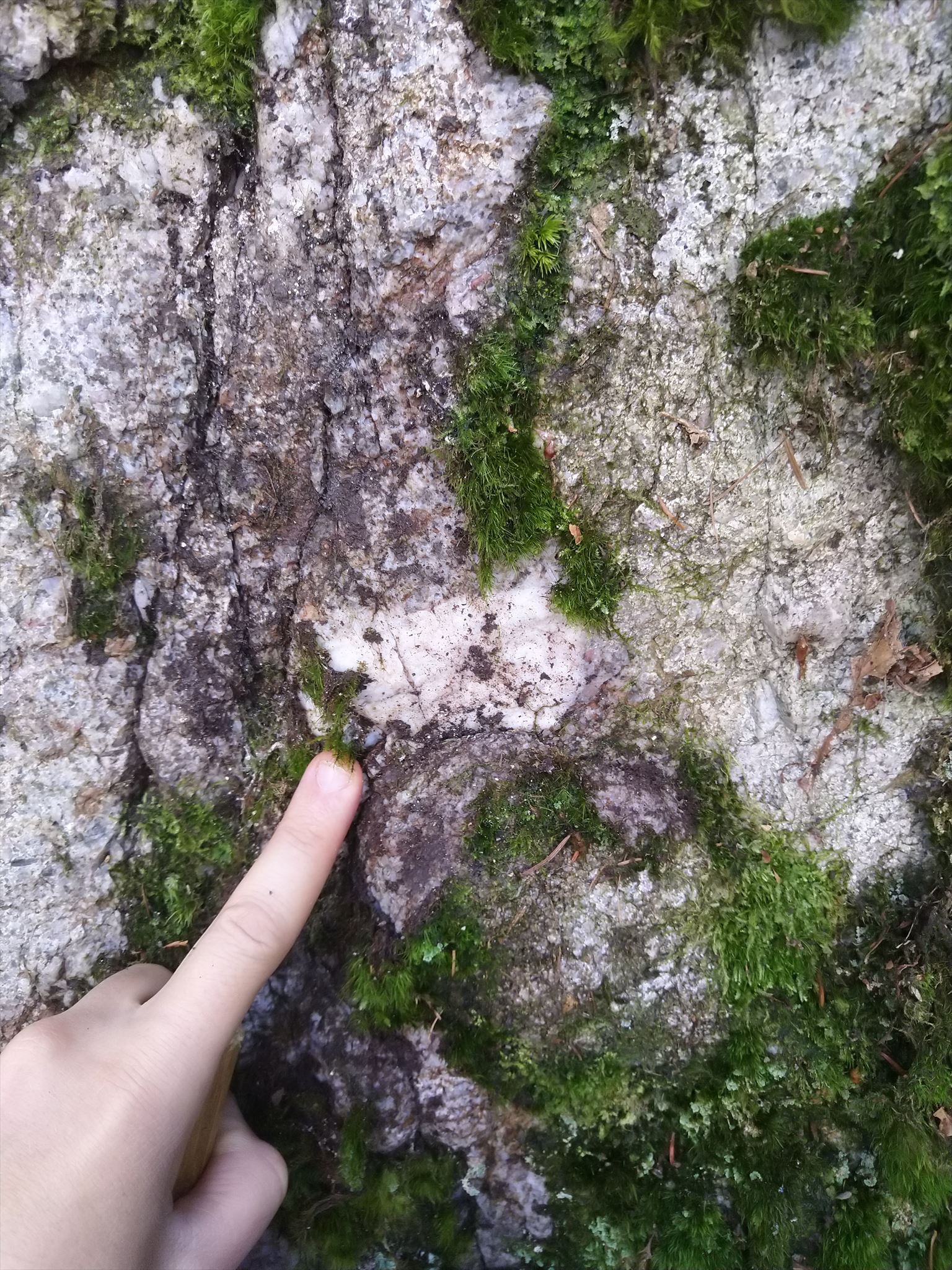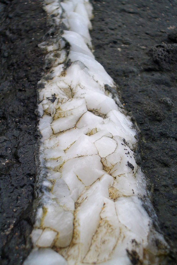 Guardando con più attenzione si può notare, tra le rocce talvolta ricoperte di muschi e licheni, la presenza di grosse venature biancastre, che indicano la presenza di un minerale particolare.
