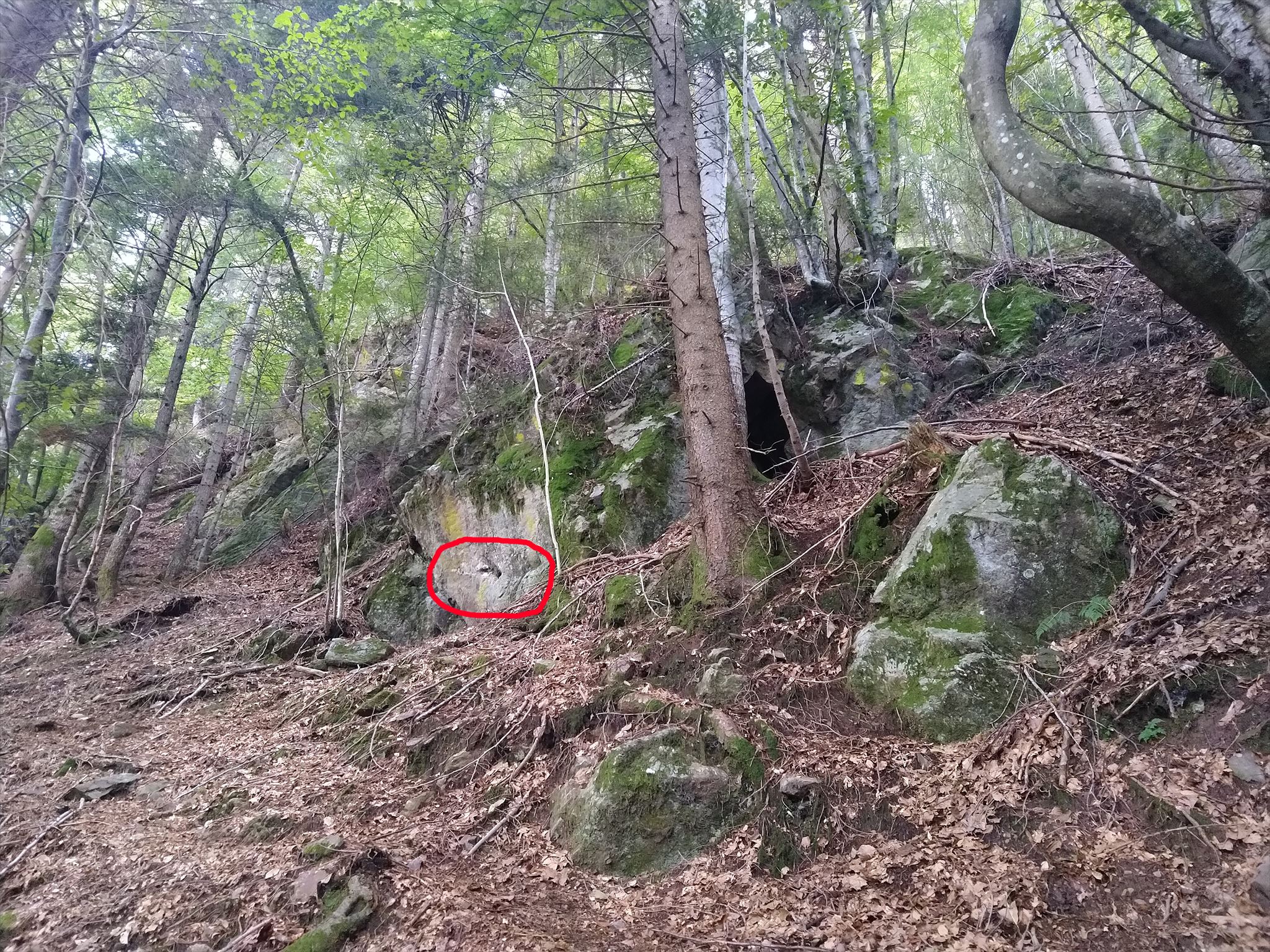 A little further on, just north and slightly higher, you will reach another outcrop characterized by a small grotto.
