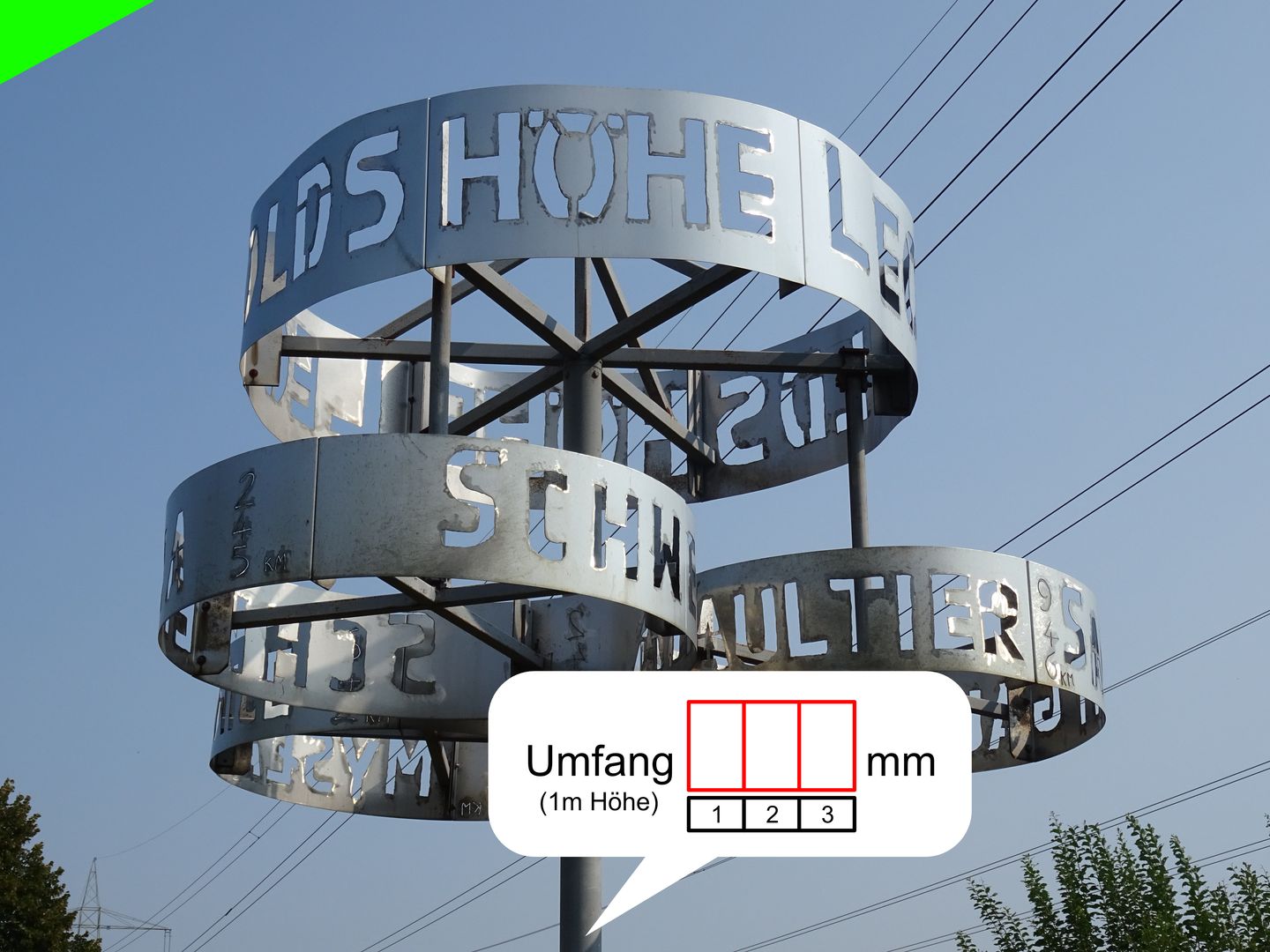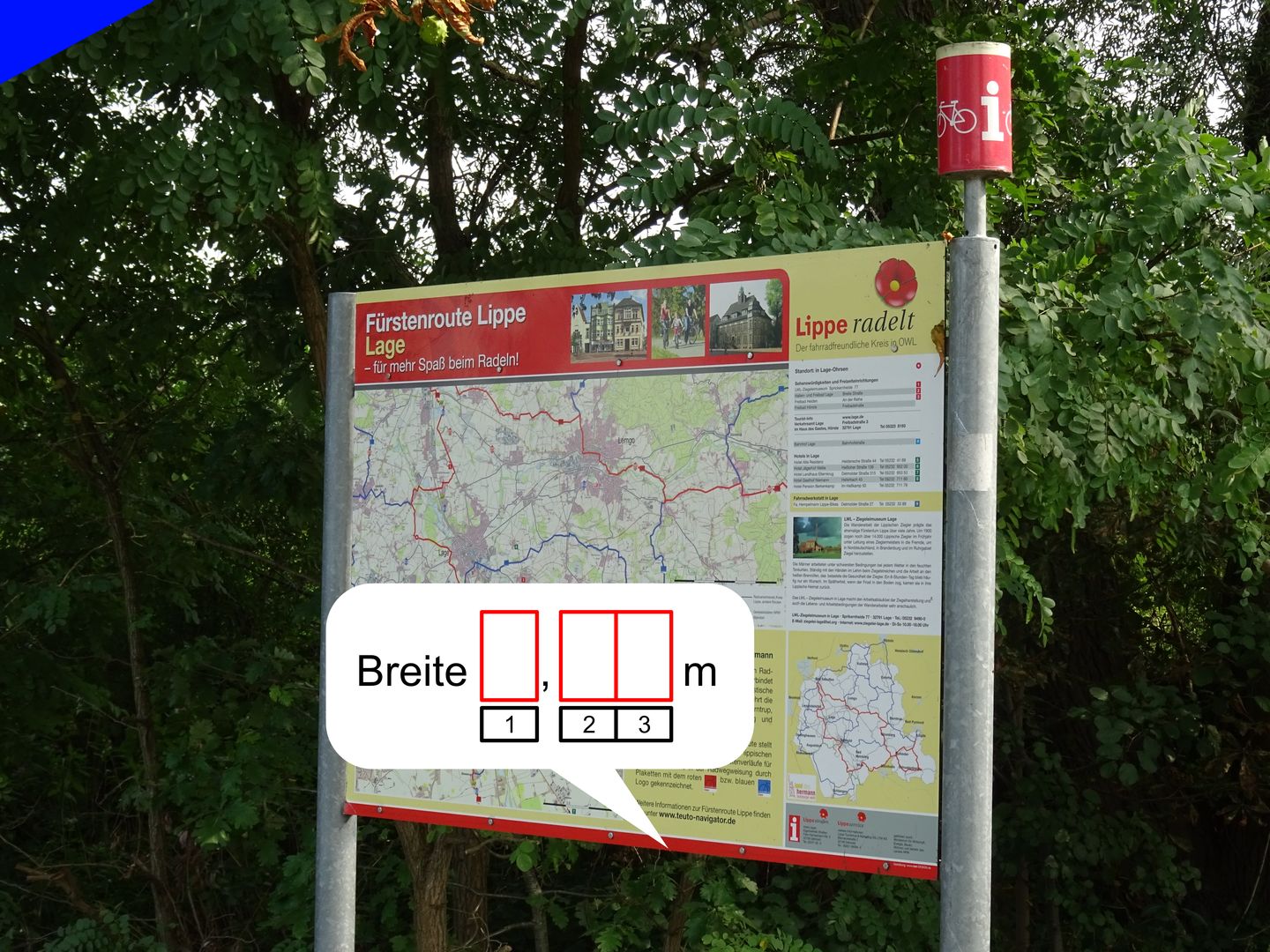 Offiziell beginnt die Route am Bahnhof Lage und endet auch dort. Um diesen Cache loggen zu können, ist es aber egal wo ihr beginnt. Ihr müsst auch nicht rechts herum fahren, links herum funktioniert es genau so gut. Den vom Owner aufgezeichneten Track der Route gibt es hier. Eine ausführliche Wegbeschreibung gibt es hier. Alle 22 Stationen die es unterwegs zu finden gibt liegen an dieser Route. Ihr müsst sie Anhand der folgenden Fotos finden und jeweils die kleine Aufgabe lösen. Um alle Aufgaben lösen zu können, braucht ihr ein flexibles Maßband von mindestens 1,7 m Länge. Wenn es nur 1,5 m lang ist, könnt ihr die einzigen Station die mehr als 1,5 m benötigt, aber mit nachlegen trotzdem gut lösen. Prägt euch die Fotos gut ein, da sie hier nicht in der richtigen Reihenfolge entlang der Route angezeigt werden. Außer den Fotos im Kopf und dem Maßband im Gepäck braucht ihr unterwegs nur noch einen Stift und den Lösungszettel, gegenbenenfalls Verpflegung.