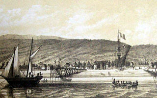 La faible profondeur de l'eau dans la baie de la ville de Saint-Paul, interdit aux navires d'approcher la côte, une seule solution, la construction de pontons, dès l'époque de la Compagnie des Indes, d'abord en bois, puis en bois sur armature de fer, ils s'avancent en mer sur quelques dizaines de mètres. Ces débarcadères permettent aux chaloupes et aux canots de transborder marchandises et passagers entre la côte et les navires.