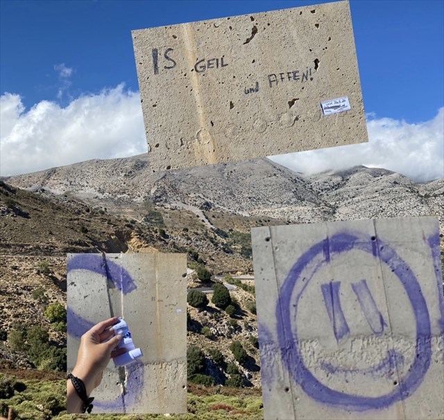Of course you can log in a traditional way but it is more fun to use the biggest logbook on Crete, so bring your own pen, edding, brush, ...